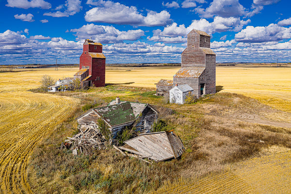 Crimson Silence – Grain Elevators of Lepine, Saskatchewan