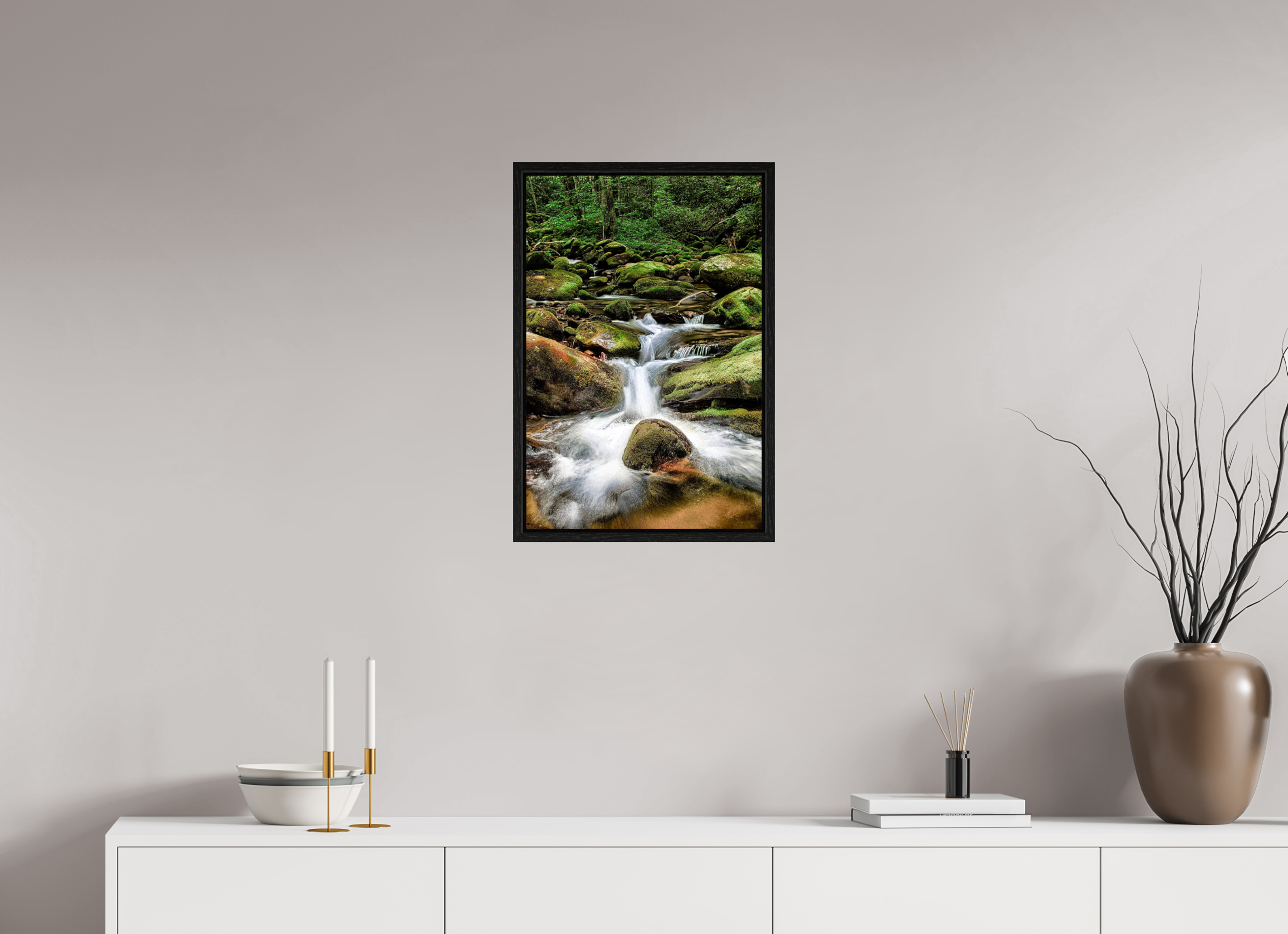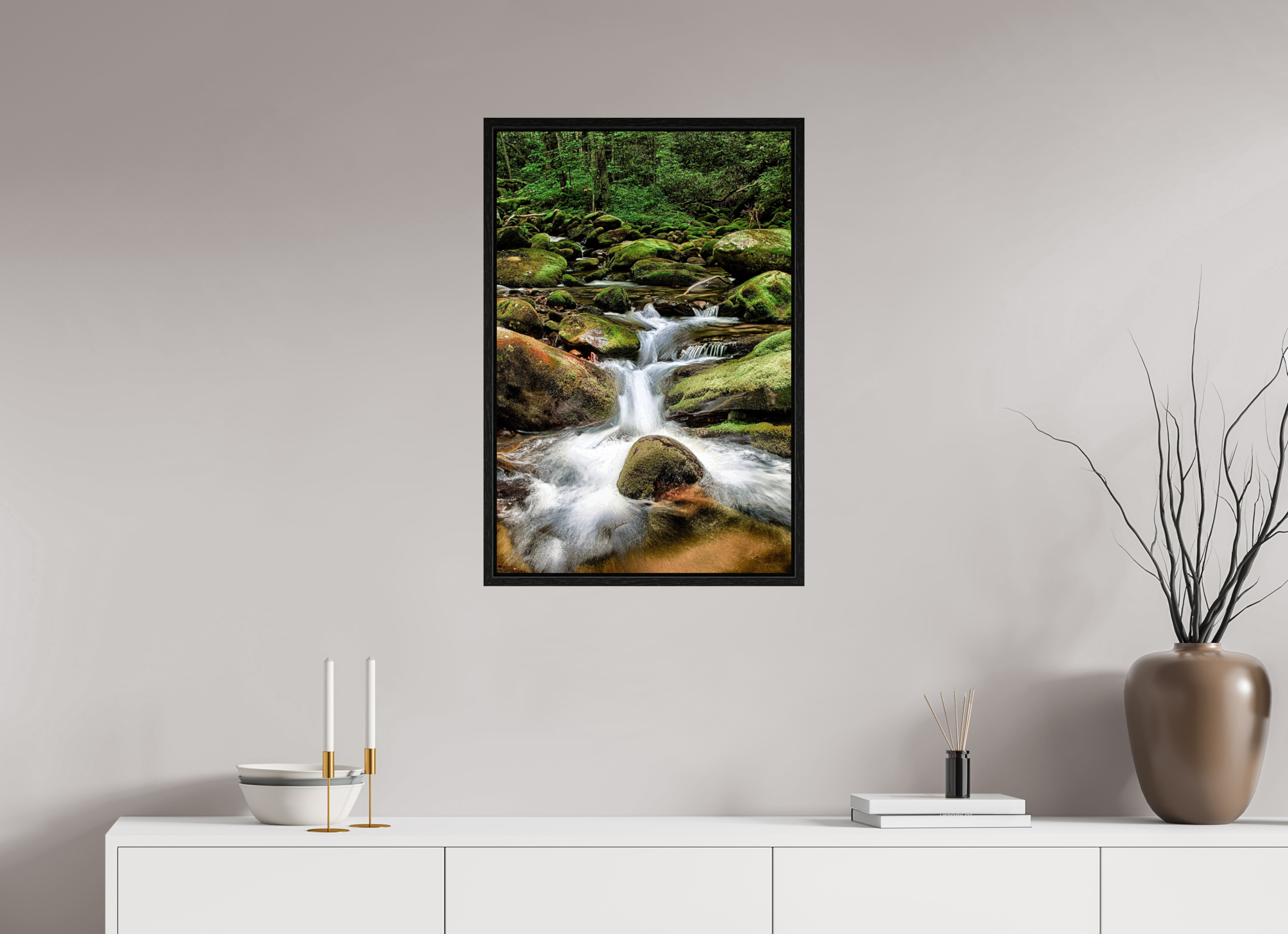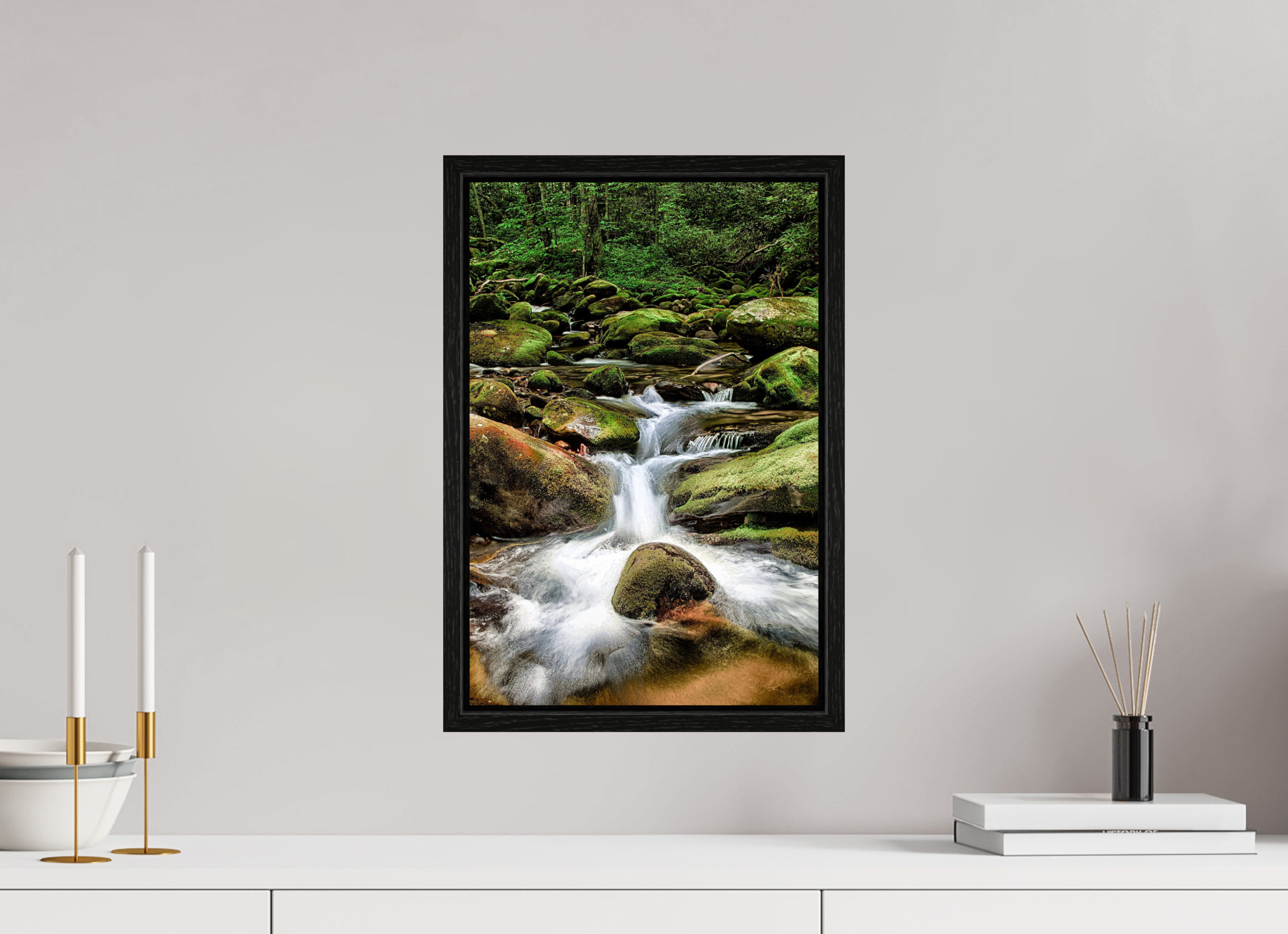 Forest Lullaby captures the soft music of Roaring Fork River, a tranquil stream winding through the heart of Tennessee’s Great Smoky Mountains. Water flows gently over moss-covered stones, weaving a melody of stillness and renewal beneath a canopy of deep green.