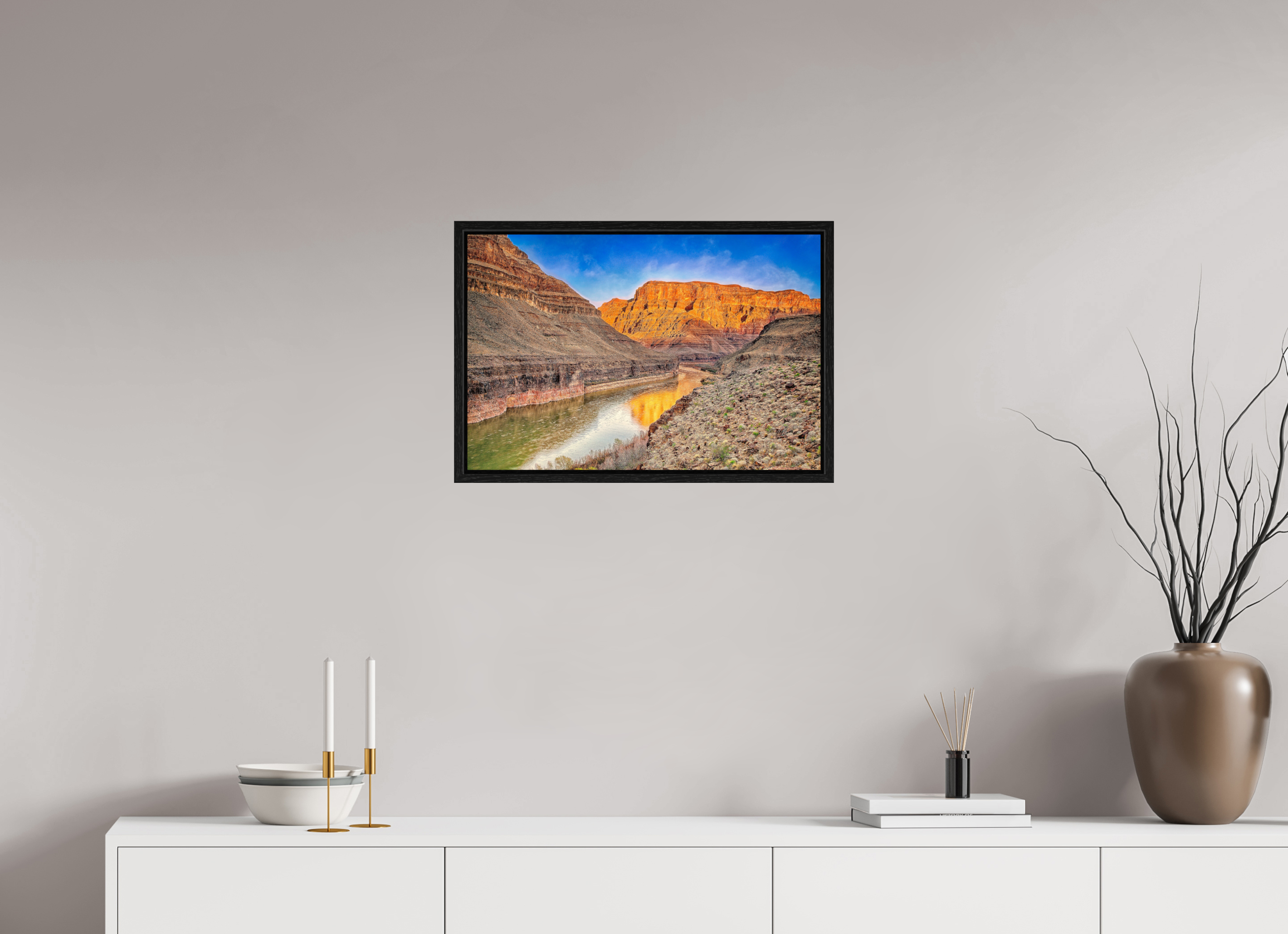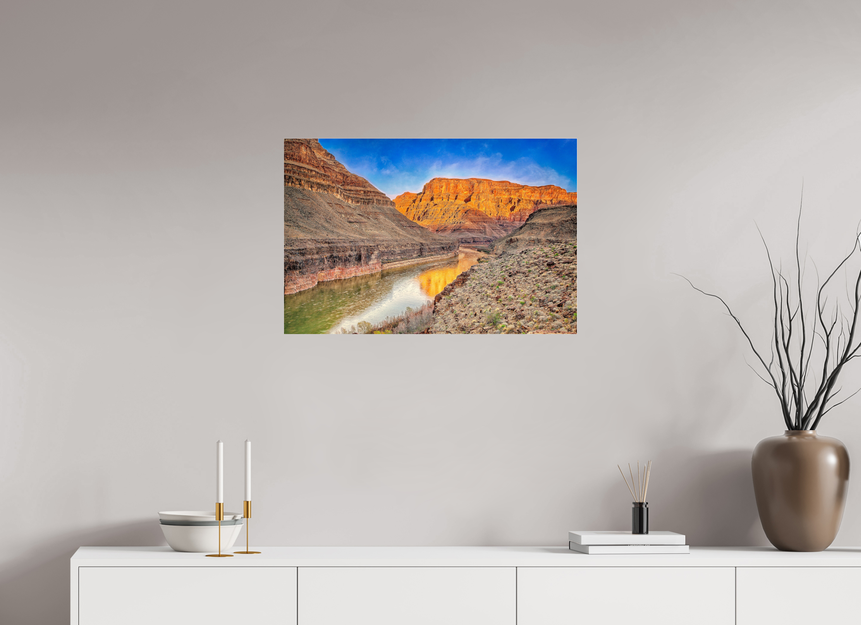 - Visualizing the artwork above key furniture pieces (sofa, bed, dining table, or desk).