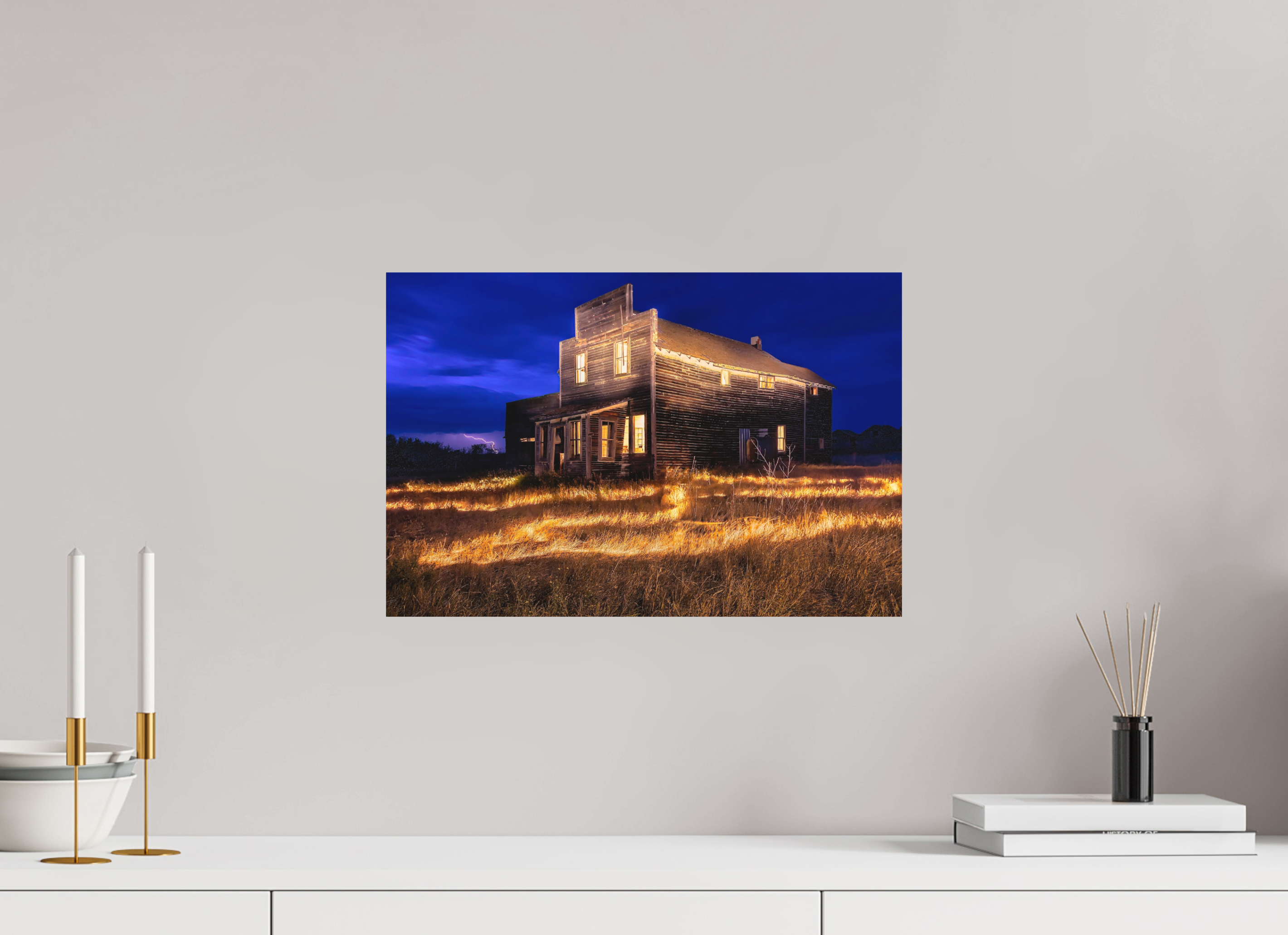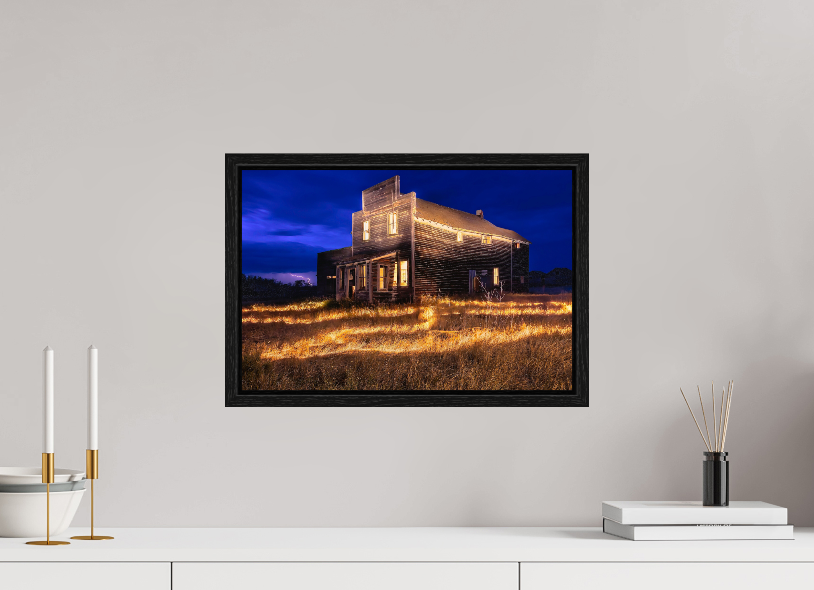 A commanding centrepiece for a living room, office boardroom, or over a long sofa.