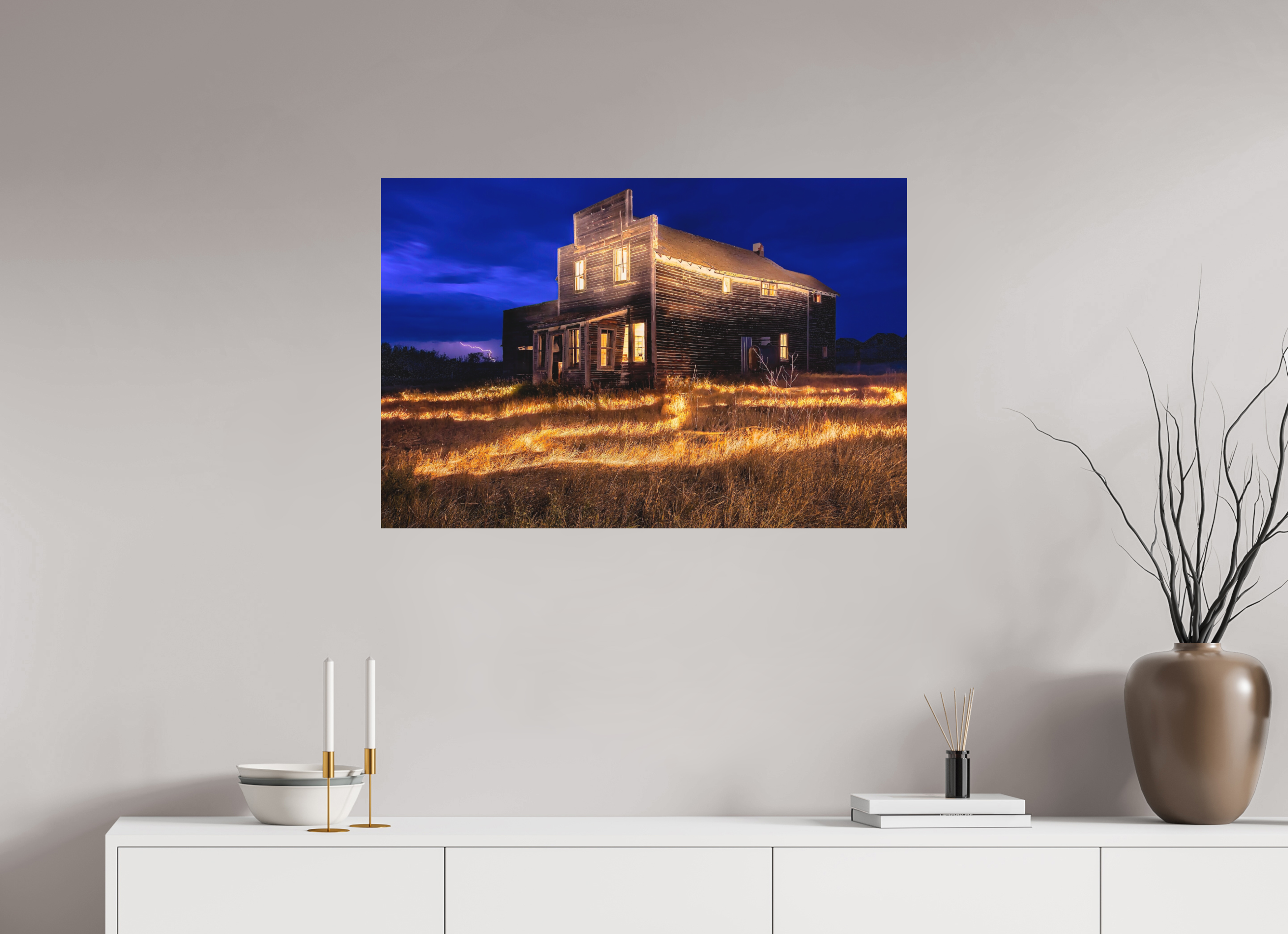 • Visualizing the artwork above key furniture pieces (sofa, bed, dining table, or desk).