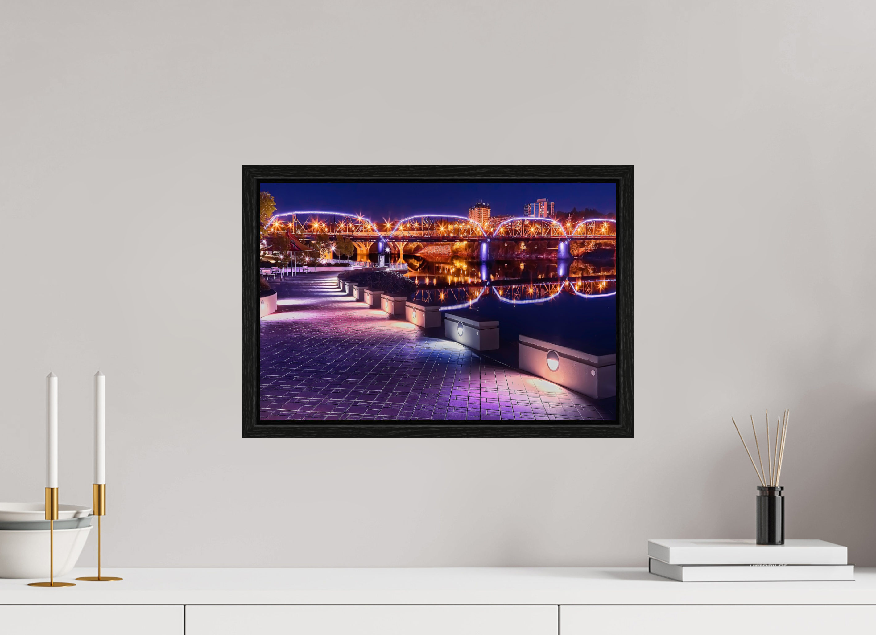 • Visualizing the artwork above key furniture pieces (sofa, bed, dining table, or desk).
