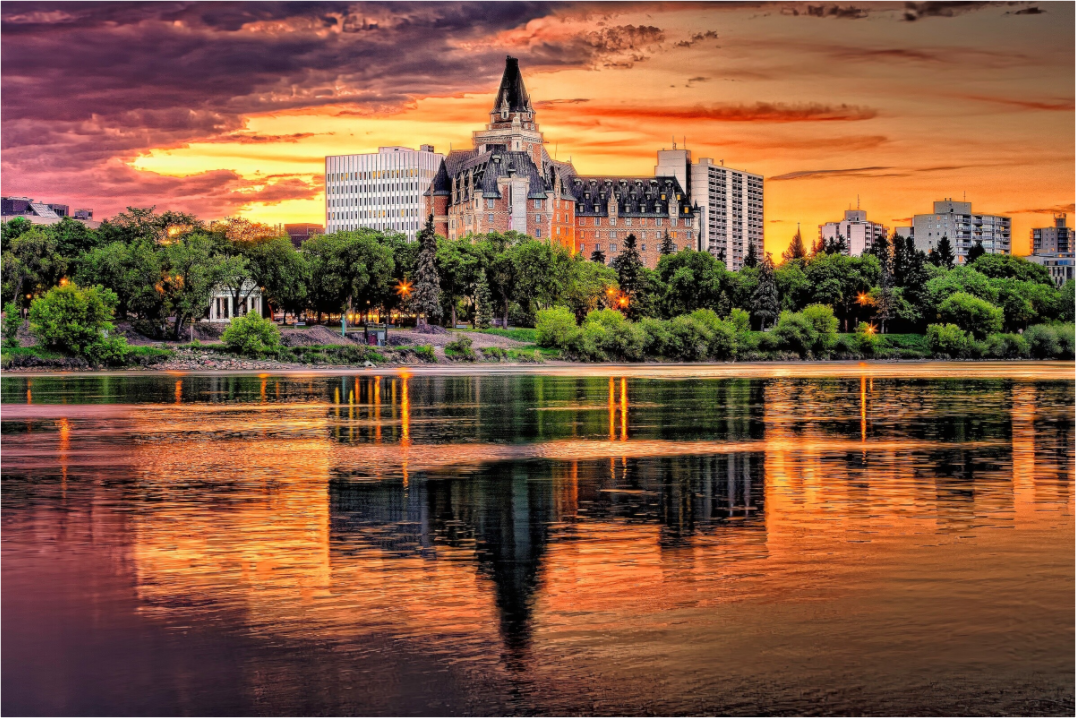 Golden evening light sets the skyline ablaze as Saskatoon’s beloved castle glows over the South Saskatchewan River. Reflected in the water’s gentle ripples, this timeless moment captures warmth, elegance, and the golden heart of the Prairies. Golden Glow of the Bess invites you to linger in the stillness of dusk—where day fades, and magic begins.