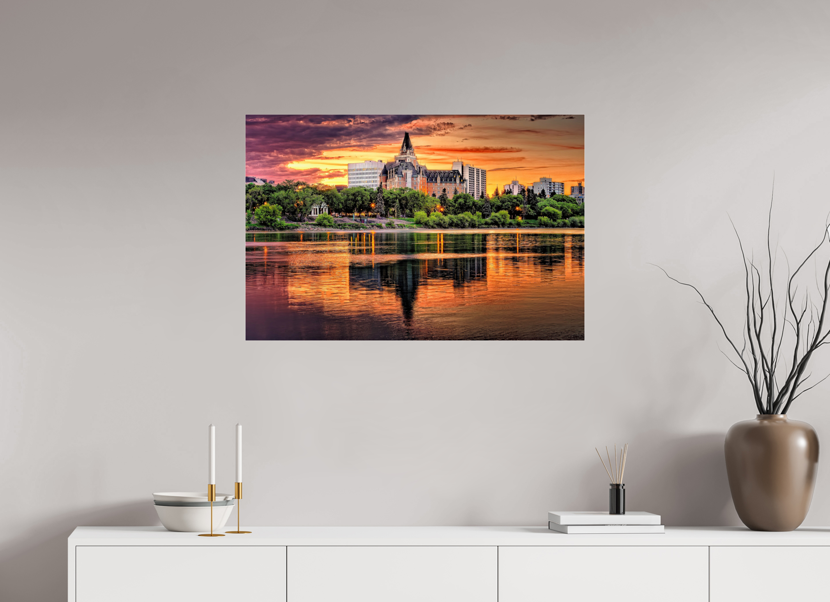 A commanding centrepiece for a living room, office boardroom, or over a long sofa.