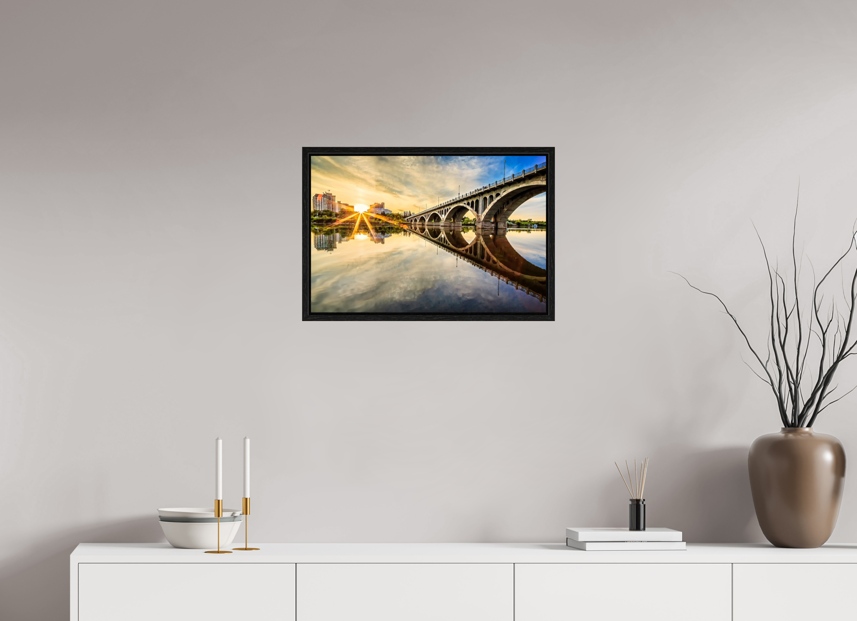 The setting sun spills golden light across the arches of the University Bridge, casting perfect reflections upon the calm South Saskatchewan River. Sunset Reflections captures a fleeting moment of warmth and symmetry—where architecture, light, and stillness meet in timeless harmony.